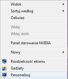 System Windows 7 oferuje swoim użytkownikom wiele różnych możliwości personalizacji wyglądu systemu. Dzięki personalizacji każdy może dostosować wygląd systemu do swojego gustu Personalizacje zaczyna się klikając prawym przyciskiem myszy na pulpit i wybór opcji Persionalizuj.